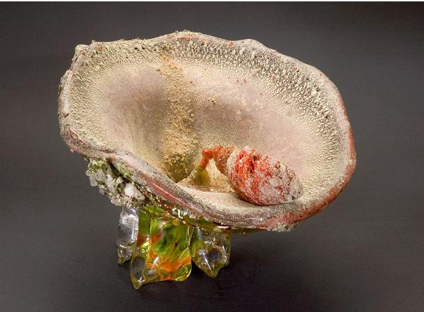 Blown glass with ceramic glazes