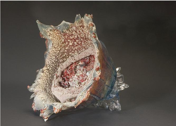 Blown glass with ceramic glazes